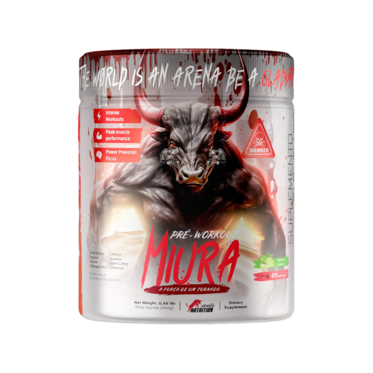 Miura 250 g Insanity Nutrition é um pré-treino formulado para entregar energia, foco e resistência durante treinos intensos. Sua composição foi desenvolvida para aumentar a disposição, melhorar o desempenho e ajudar o atleta a extrair o máximo de cada sessão de treino. Produto original, lacrado e enviado com nota fiscal.